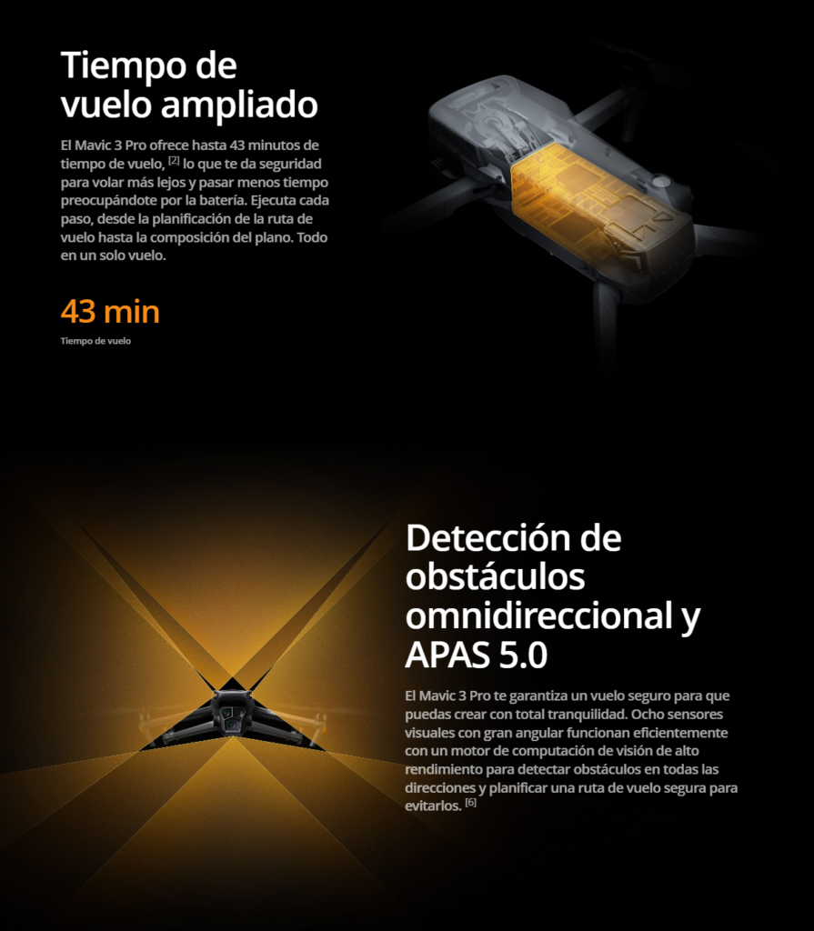 La serie DJI Mavic 3 cuenta con un rendimiento de imagen de nivel superior. El sistema de triple cámara del Mavic 3 Pro abre paso a una nueva era de drones con cámara al albergar tres sensores y objetivos con distintas distancias focales. Equipado con una cámara Hasselblad y dos telecámaras, el Mavic 3 Pro es un dron con triple cámara que desbloquea nuevas perspectivas de grabación para que puedas disponer de más libertad creativa, capturar paisajes fascinantes, explorar narraciones fotográficas y realizar obras maestras cinematográficas.