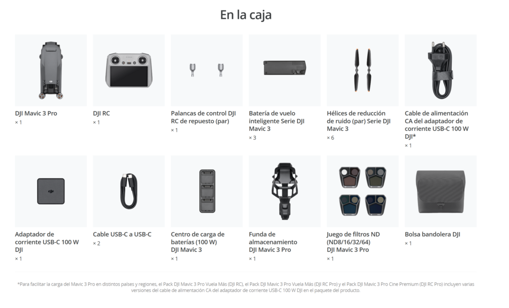 *Incluye un DJI RC, dos baterias adicionales, un centro de carga de baterias, un juego de filtros ND, etc.