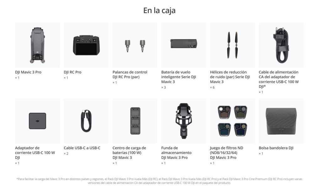 *Incluye un DJI RC Pro con pantalla de alto brillo 1080px, dos baterías adicionales, un centro de carga de baterías, un juego de filtros ND, etc.